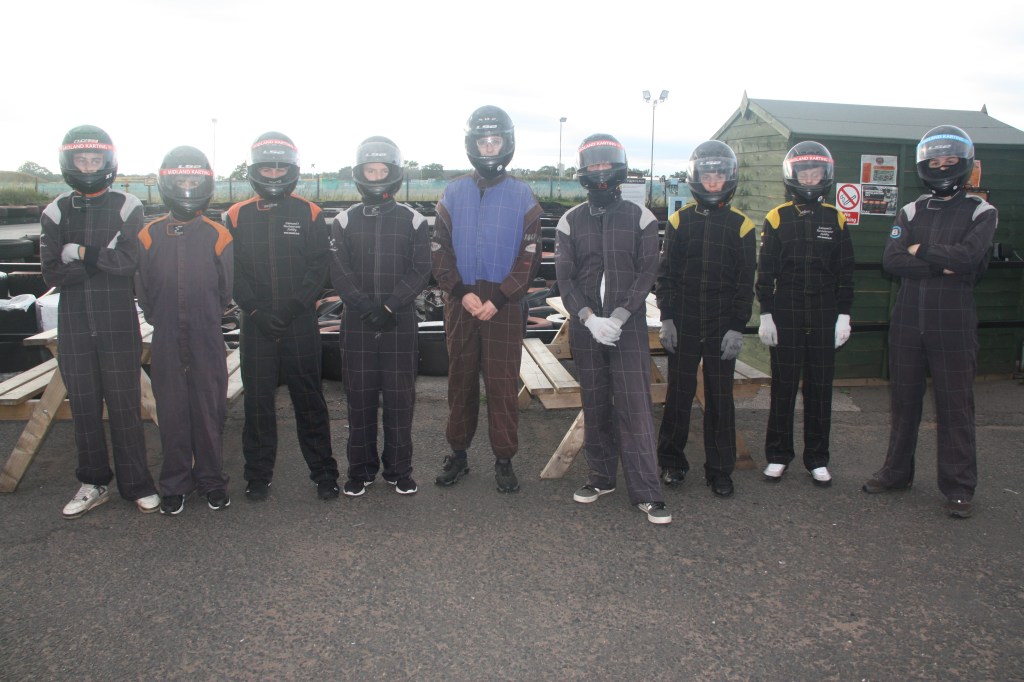 After the safety briefing the Explorers emerged form the porta-cabin and into the evening sunlight of the karting track, now looking glorious in racing overalls, gloves, balaclava and helmet. The unit was split into two groups, which was ideal as it meant each of the groups would have 15 minutes on the track followed by 15 minutes of watching the other group and then repeated… a chance to learn where there are slippery patches of track and to formulate their racing line strategies.