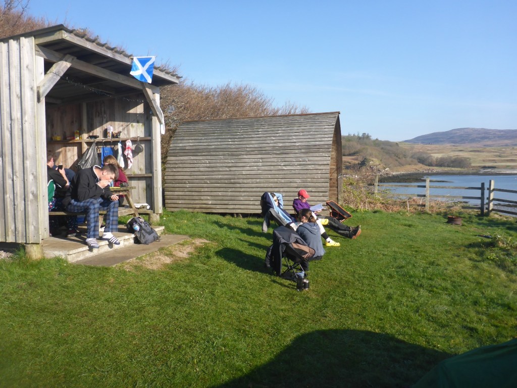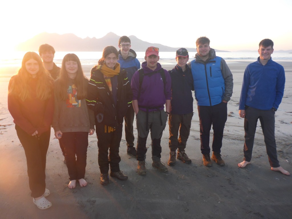 On Sunday 6th April at 8pm we set off on our mini adventure to Scotland. After 8 hours of travel, we arrived in the town of Mallaig on the west coast of Scotland. By the time we arrived it was 4am in the morning and we needed to wait 6 hours for our ferry. The time flew by and before we knew it, we were ready for the second leg of our journey. We set sail for the remote Isle of Eigg where we would be spending the next 4 days. Upon arrival, the island looked very quiet apart from a shop and a pub. We went to settle into our accommodation and felt very welcomed with the little pods and a main hut where we set up our cooking equipment. Whilst some of us had a well-deserved nap the rest did shopping for lunch, dinner and breakfast the next morning. To make the most of the weather we went to the beach and had a paddle in the water which was extremely cold but strangely enjoyable. Before long we headed back and started cooking dinner, which was spag bol, an absolute classic. After a long day everyone headed to bed.