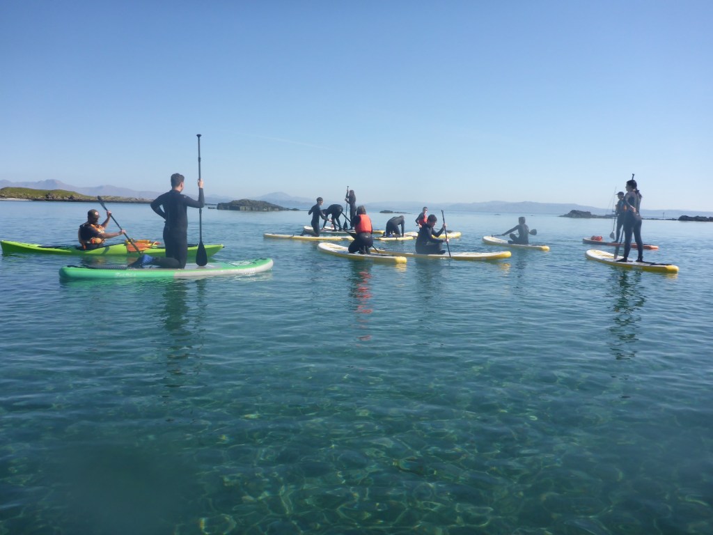 On Wednesday we took the chance to have a more laid-back day as we had paddle boarding organised with John and Kat. We played several games on the paddle boards and of course there was lots of falling in involved which was all part of the fun. After that we were all exhausted and so went back to have dinner followed by a journey over to the other side of the island by Charlie to watch the sunset which was absolutely stunning as we watched the sun gently lay down for the night behind the rolling hills on the island of Rum. After that Charlie took us back to a woodland area where we set up a fire as it wouldn’t be Scouts without it.
